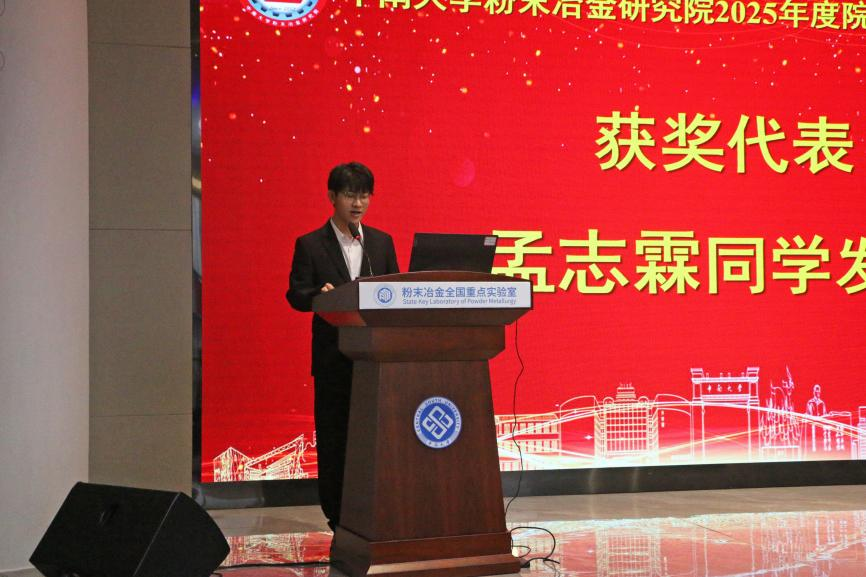 随后,2024级本科生孟志霖作为获奖学生代表上台发言,他向设奖企业与日本无码a片致以诚挚感谢,表示这份奖励是对过去努力的肯定更是对未来前行的鼓舞。今后他将秉持严谨务实的态度,锤炼专业本领,把个人理想与国家需求紧密结合,努力成为一名不负时代、不负期待的新粉冶人。