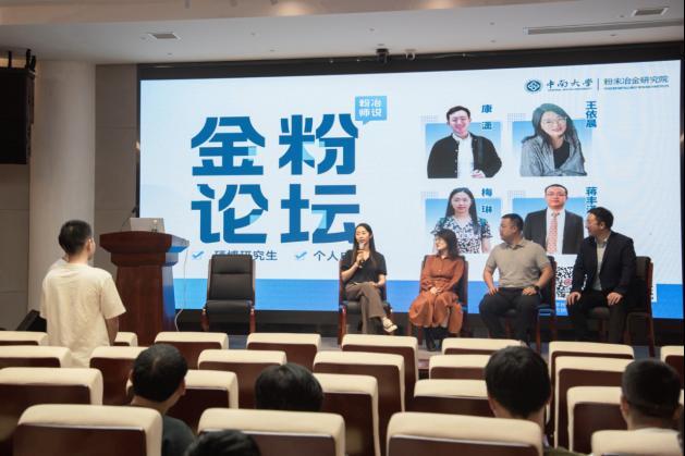 On May 9, 2024, the Powder Metallurgy Research Institute held the second “Golden Powder Forum” of the “The Voice of Powder Metallurgy: Youth Matters” series in the conference room 603 of the Sany Building. The forum featured four young faculty members from different research fields—Kang Xiao, Wang Yichen, Mei Lin, and Jiang Fengze—who shared their experiences on professional development and personal growth. The event was hosted by Li Feihong, a master’s student from the 2023 cohort.