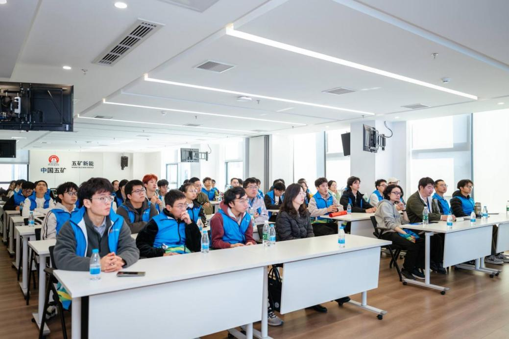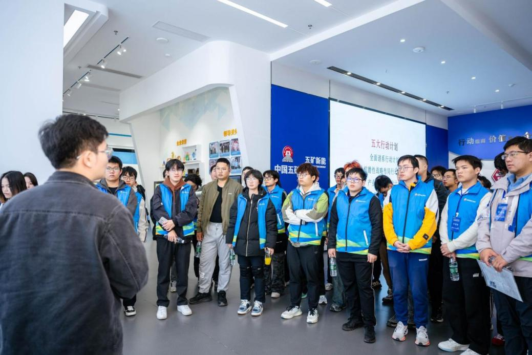 在五矿新能源材料(湖南)股份有限公司,人力资源负责人带领团队参观展厅、锂资源预处理车间、正极材料生产线及核心研发实验室。技术人员结合生产实际,详细讲解了高镍三元材料、磷酸铁锂等核心产品的研发逻辑、生产工艺与性能优化技术,加深了师生们对新能源材料从研发到产业化的理解。