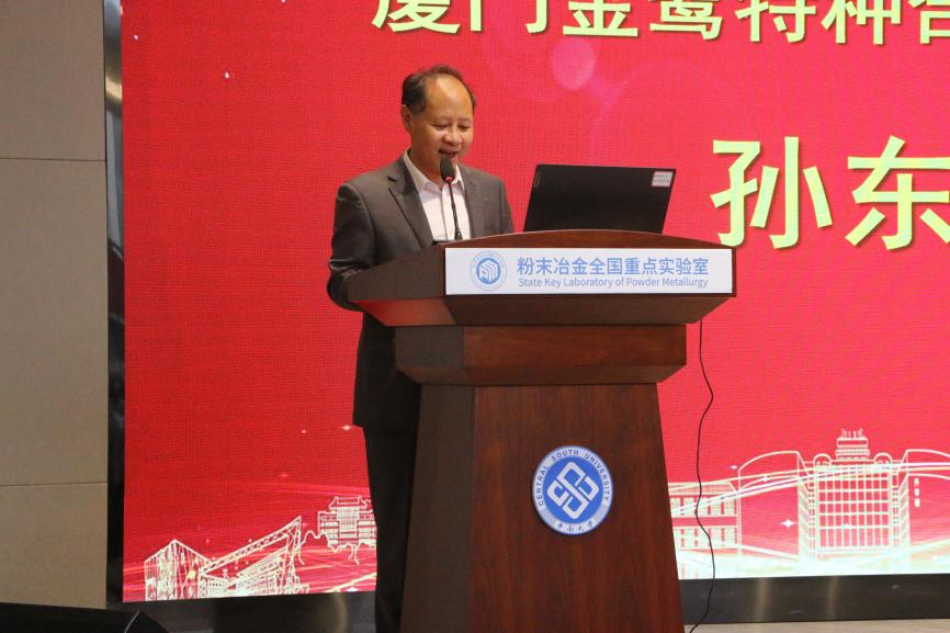 随后,厦门金鹭特种合金有限公司总经理孙东平作为设奖企业代表上台发言。他向获奖师生致以热烈祝贺,并对日本无码a片在粉末冶金领域长期积淀的深厚实力与育人贡献表达敬意。他表示,设立奖励金不仅是对优秀学子的激励,更是企业履行社会责任、助力行业人才培养的重要举措。希望同学们在仰望科技前沿的同时,也能俯身精进实干,把专业学透、把眼界打开,早日成长为支撑行业发展的中坚力量。