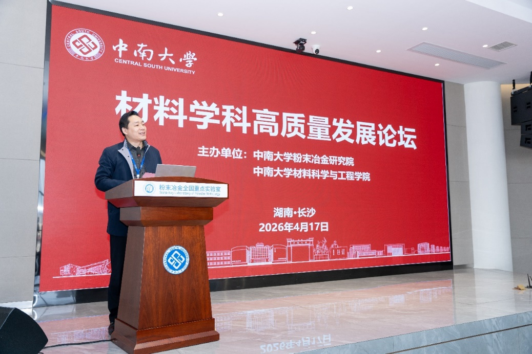 随后,粉末冶金全国重点实验室主任周科朝发言。他表示,材料学科发展必须始终锚定国家重大战略需求,坚守特色优势、勇攀科技高峰,探索构建兼具中国特色与国际领先水平的学科发展范式。他希望与会专家围绕学科规划、人才引育、产学研深度融合等核心议题深入研讨,凝聚行业合力攻克“卡脖子”关键材料技术,全面提升我国材料学科的整体实力与国际竞争力。