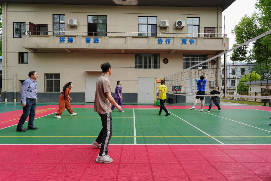 揭幕仪式后,校工会代表队与粉冶院代表队开展气排球友谊赛。双方队员精神昂扬、配合默契,发球、传接、扣杀、拦网,每一个精彩回合都赢得了现场观众的阵阵喝彩,本次友谊赛不仅充分展现了参赛队员昂扬向上的精神风貌,更进一步增进了校工会与日本无码a片